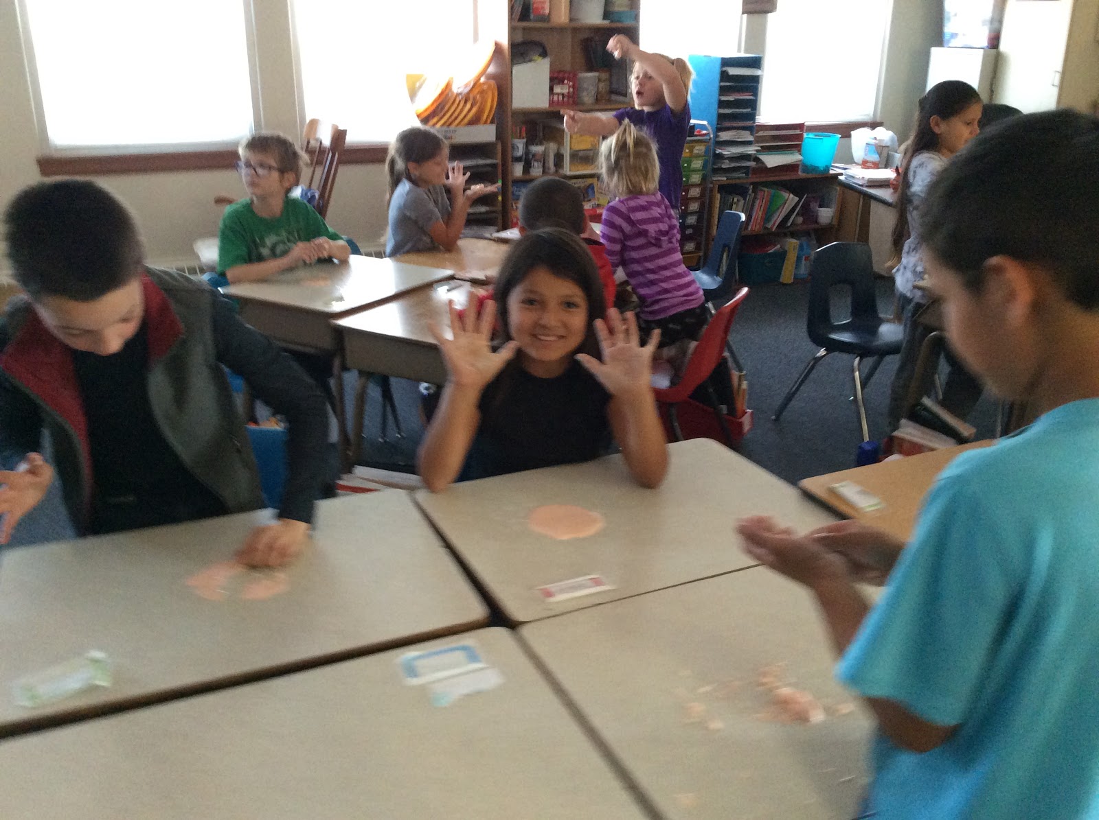 We started with a little powder. Then we added a little water...and just like that it was snowing in Mrs.Olson's room.